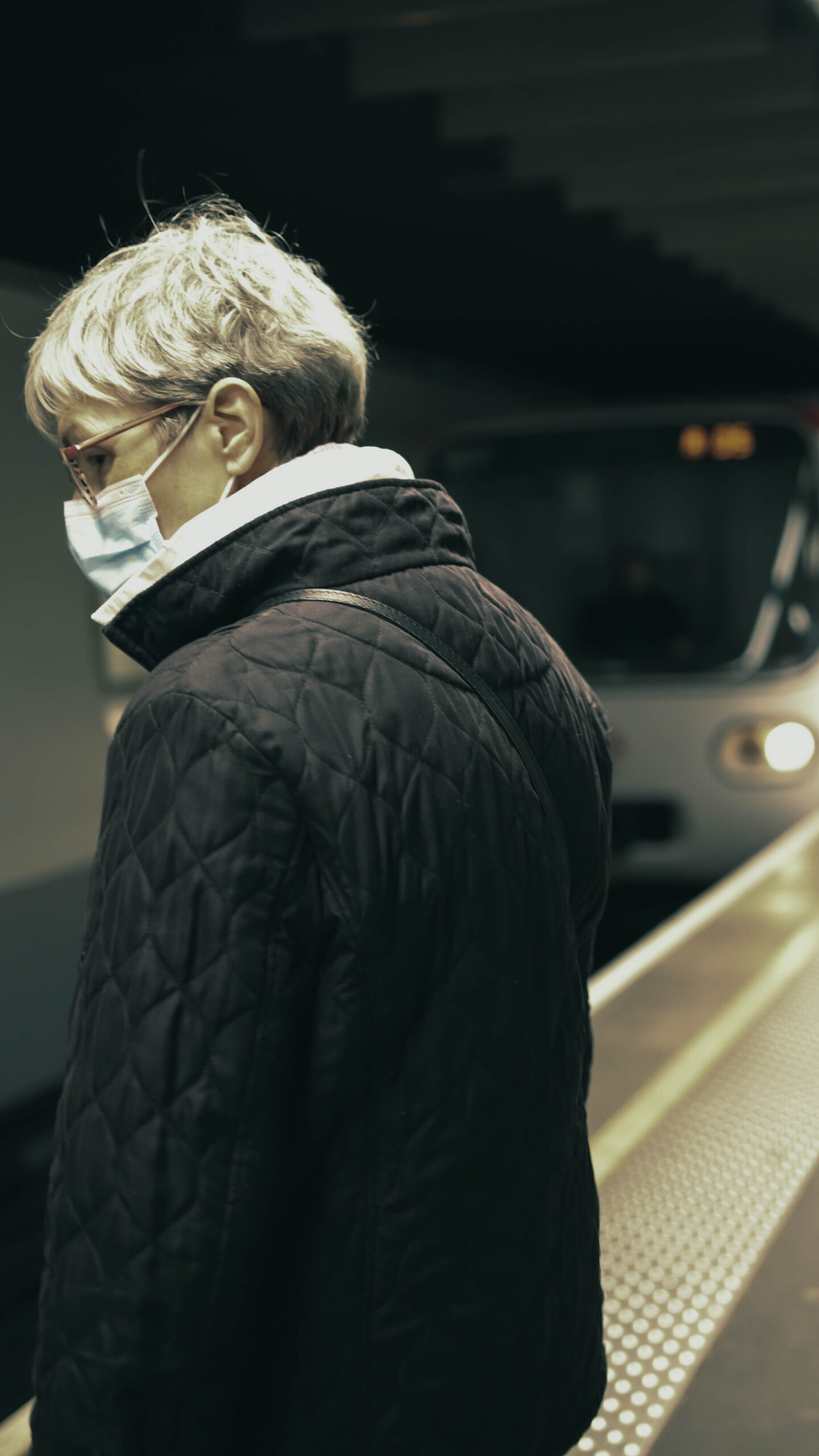 Elle attend, figée dans le froid du métro,